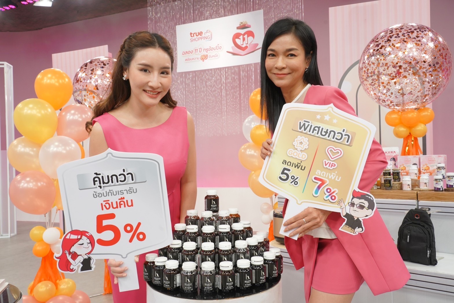 ทรูช้อปปิ้ง ช้อปที่ใช่ รู้ใจคุณ ตอกย้ำความเป็นผู้นำธุรกิจโฮมช้อปปิ้งด้านสินค้ากลุ่มความงามและสุขภาพอันดับหนึ่งของประเทศไทยฉลองครบรอบ 11 ปี ชู คอนเซ็ปต์ “ช้อปความสุข สุขยืนหนึ่ง” ในเดือนตุลาคม 2565 ยกทัพขบวนสินค้าคุณภาพชั้นนำกลุ่มบิวตี้ แฟชั่น เครื่องสำอาง และอาหารเสริมเพื่อคนรักสุขภาพ มาให้เลือกสรรอย่างจุใจ พร้อมส่งแคมเปญสุขกับตัวเลข 11 “ส่งความสุข ผมสวยสุขภาพดี” ทุกการสั่งซื้อสินค้าที่ร่วมรายการ เฉพาะช่องทางทีวีโฮมช้อปปิ้ง รับฟรีผลิตภัณฑ์เสริมอาหารบำรุงเส้นผม H Plus Pro Active Dietary Supplement มูลค่า 250 บาท จำนวน 30,000 กระปุก ตั้งแต่วันนี้ถึง 11 ตุลาคม2565 ยิ่งไปกว่านั้น ยังชวนลูกค้าแบ่งปันน้ำใจ ส่งต่อความดีกับโครงการ “แชร์รักปันสุข ปีที่ 4” ทุกยอดการช้อปในวันที่ 11 ตุลาคม 2565 จะปันเงิน 11 บาท มาจัดซื้อสินค้าอุปโภค บริโภคมอบให้แก่มูลนิธิธารนุเคราะห์ สถานพักฟื้นคนชราบางเขน และเพื่อขอบคุณลูกค้าคนสำคัญ คืนกำไรสูงสุด 12% โดยรับเงินคืน5% ทุกออเดอร์ และส่วนลดสมาชิกสูงสุด 7% สุขทุกการช้อป สะดวกทุกช่องทาง สุขยืนหนึ่งไปกับทรูช้อปปิ้งได้ตลอดเดือนตุลาคมนี้