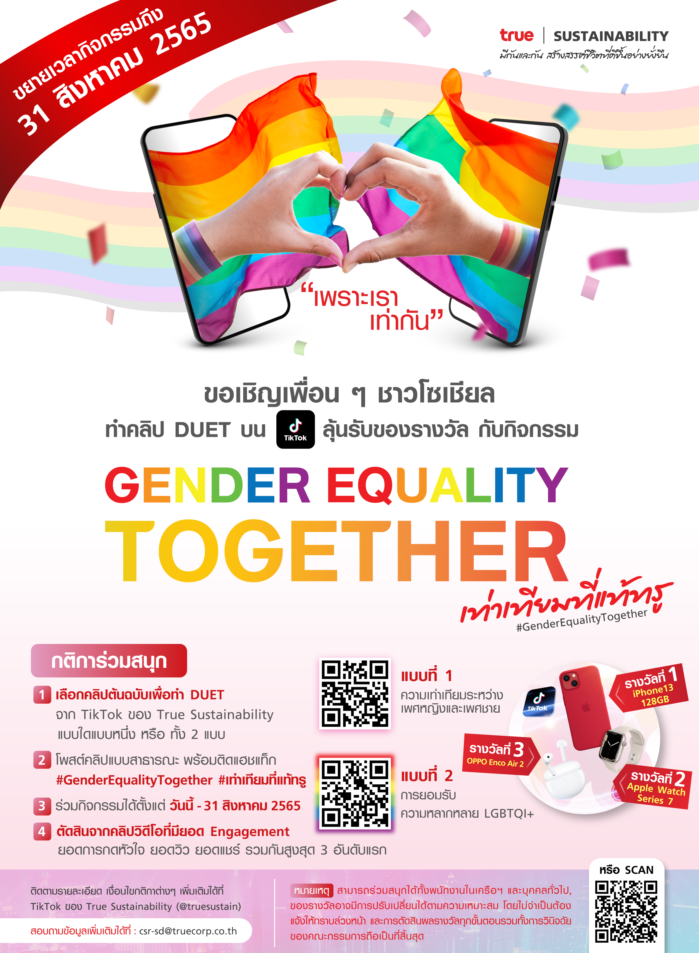 #GenderEqualityTogether #เท่าเทียมที่แท้ทรู #เพราะเราเท่ากัน #Truesustainability