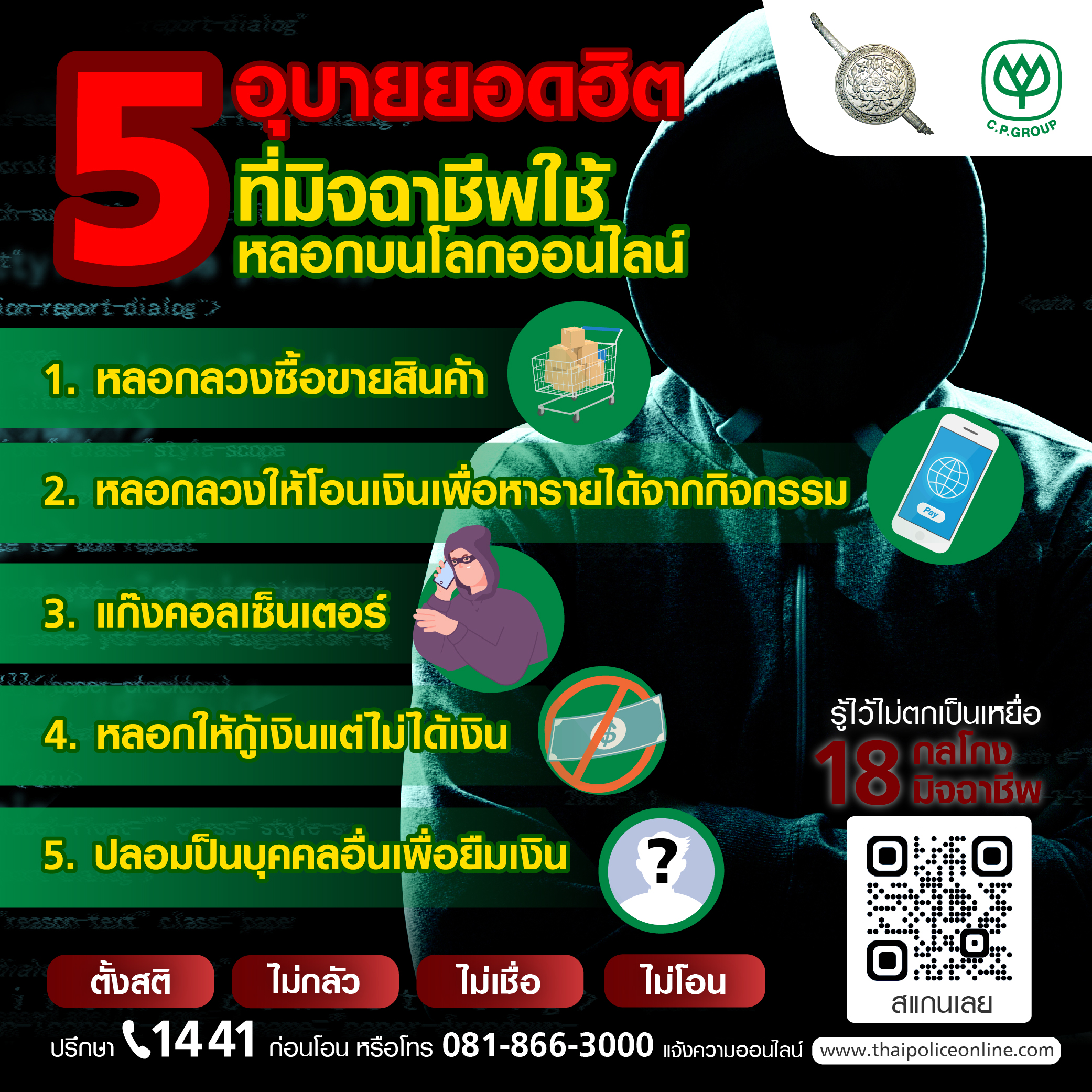 #มิจฉาชีออนไลน์ #หลอกโอนเงิน #คอลเซ็นเตอร์ #สำนักงานตำรวจแห่งชาติ #เครือเจริญโภคภัณฑ์ #ซีพี #CP