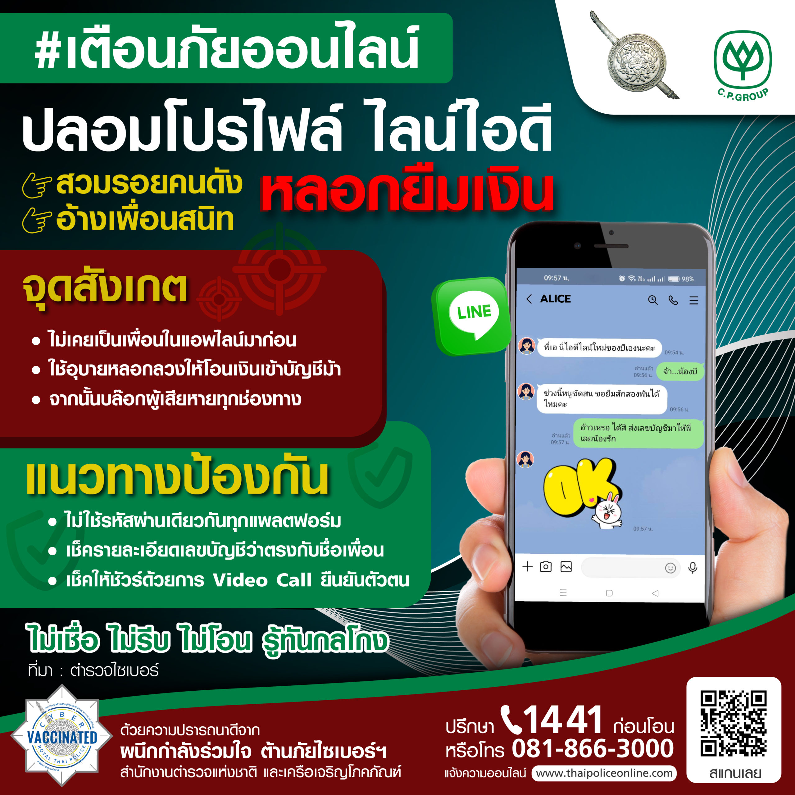 ด้วยความปรารถนาดีจากโครงการผนึกกำลังร่วมใจ ต้านภัยไซเบอร์วัคซีนโดย สำนักงานตำรวจแห่งชาติ และ เครือเจริญโภคภัณฑ์