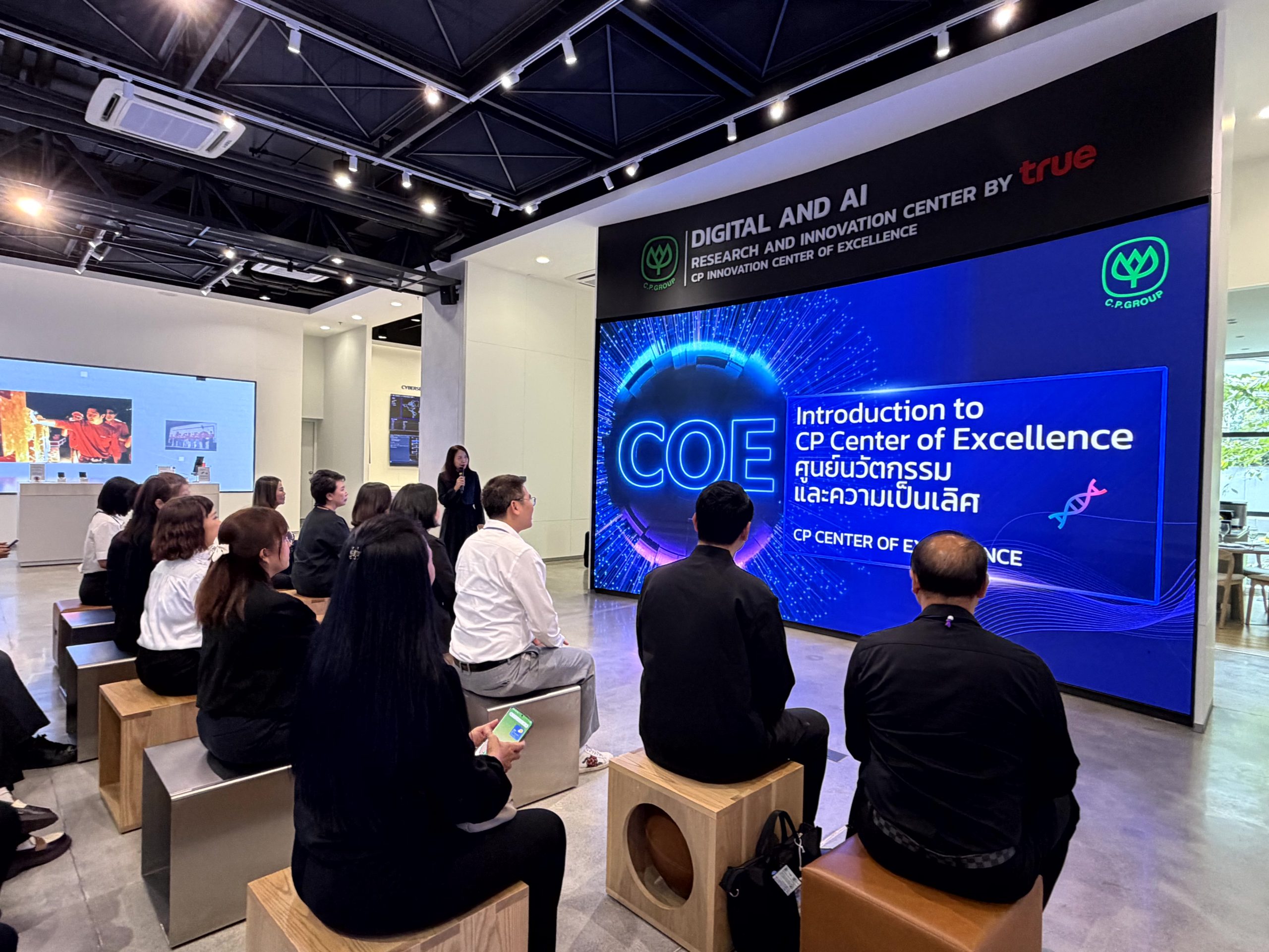 ไฮไลต์สำคัญของการดูงานในครั้งนี้ คือการเจาะลึก CP Center of Excellence (CP CoE) ศูนย์กลางการวิจัยและพัฒนานวัตกรรมชั้นสูง ซึ่งประกอบด้วย 3 ขุมพลังหลัก ได้แก่ Bio-Technology Lab: ห้องปฏิบัติการสุดล้ำที่มุ่งพัฒนานวัตกรรมชีวภาพ เพื่อยกระดับสุขภาพและความมั่นคงทางอาหารของมนุษย์ Digital & AI Lab: ศูนย์พัฒนาระบบอัจฉริยะและการวิเคราะห์ข้อมูลขั้นสูง ปลดล็อกขีดความสามารถของ AI สู่การแก้ปัญหาและการใช้งานจริงในระดับอุตสาหกรรม และ Data Center & Cloud: โครงสร้างพื้นฐานทางเทคโนโลยีที่แข็งแกร่ง หัวใจสำคัญในการจัดเก็บและประมวลผลข้อมูลขนาดใหญ่ เพื่อเตรียมความพร้อมให้นักบริหารงานสื่อสารก้าวทันการเปลี่ยนแปลงของโลกเศรษฐกิจดิจิทัลอย่างเต็มรูปแบบ