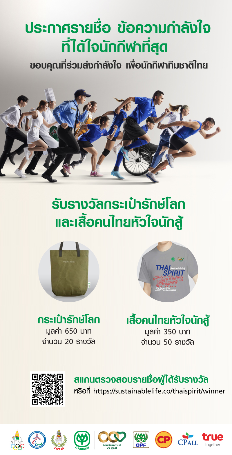 - เสื้อคนไทยหัวใจนักสู้ มูลค่า 350 บาท จำนวน 50 รางวัล
