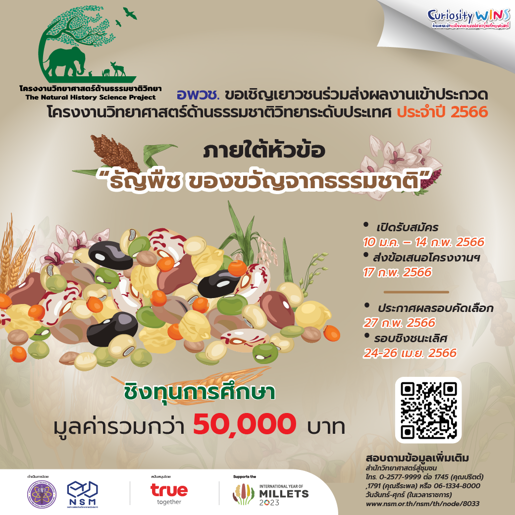 มาแล้ว!! #ประกวด #โครงงานวิทยาศาสตร์ด้านธรรมชาติวิทยา ระดับประเทศ 2566” 💰 ชิงทุนการศึกษารวมกว่า 50,000 บาท ‼️