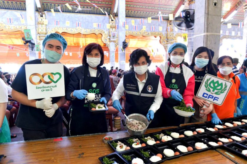 นอกจากนี้ เนื่องในวันอาหารโลกปีนี้ บริษัทฯ ร่วมกับ มูลนิธิ SOS และ ภาคีเครือข่าย มอบอาหารให้แก่กลุ่มเปราะบาง ตามแนวคิด “Leave NO ONE behind”หรือ “ไม่ทิ้งใครไว้ข้างหลัง” โดยเปลี่ยนอาหารส่วนเกิน (Surplus Food) เป็นเมนูอร่อย สะอาด ปลอดภัย มอบให้ชุมชนที่อาศัยในพื้นที่รอยต่อระหว่างเขตลาดพร้าว เขตห้วยขวาง และเขตจตุจักร 2,500 มื้อ ประกอบด้วย ชุมชนซอยลาดพร้าววังหิน 10 และ 12 ชุมชนสันติสุข ชุมชนลาดพร้าว 45 และชุมชนหลังตลาดสุภาพงษ์ โดยใช้โรงครัววัดลาดพร้าว เป็นสถานที่ปรุงอาหารเพื่อบรรจุกล่องแจกในชุมชนกลุ่มเปราะบางอย่างทั่วถึง มีการลงเรือนำอาหารกล่องแจกครัวเรือนที่ขาดแคลนริมคลอง รวมทั้งทำอาหารปรุงสุกให้ประชาชนนำภาชนะส่วนตัวมาใส่เพื่อลดขยะบรรจุภัณฑ์ โดยซีพีเอฟสนับสนุนอาหารที่มีโภชนาการและสารอาหารครบถ้วน มอบโปรตีน ซึ่งเป็นแหล่งพลังงานสำคัญ อาทิ ขาเป็ดพะโล้ หมูดำบด สะโพกหมูซีพีคูโรบูตะหั่นชิ้น ขาหมูเผาสไลซ์อนามัยซีพี กระดูกซุปหมูหั่นชิ้นอนามัยซีพี และหมูแดดเดียว